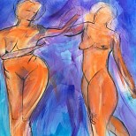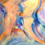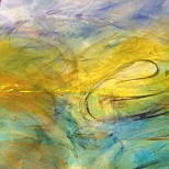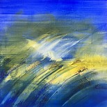 Het schilderij laat het springen van vissen in een meer in Portugal zien, maar doet me ook denken aan het ijsselmeer.