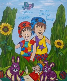Een globale impressie van het schilderij "In het groen groen knolle land" 100x120cm.
