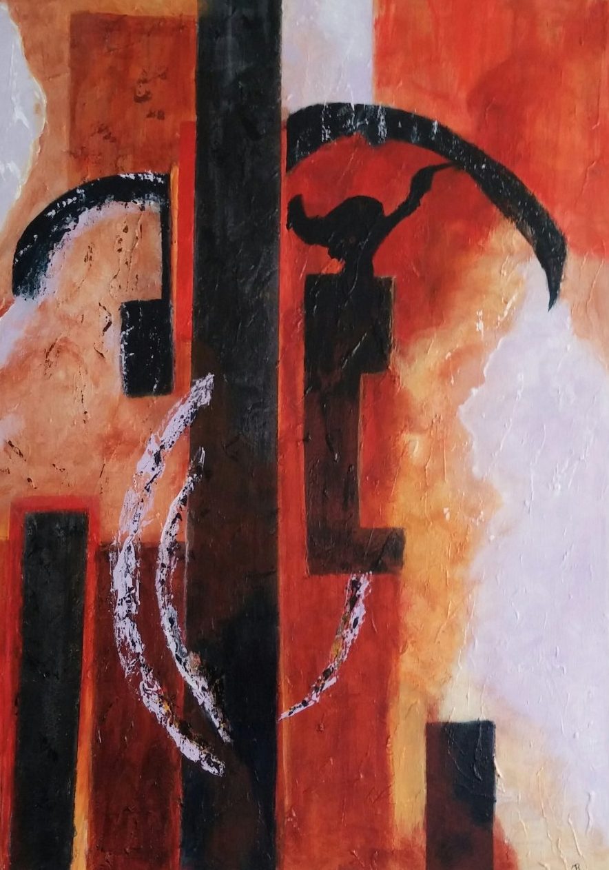 Een globale impressie van het schilderij "Geen titel" 70x50cm.