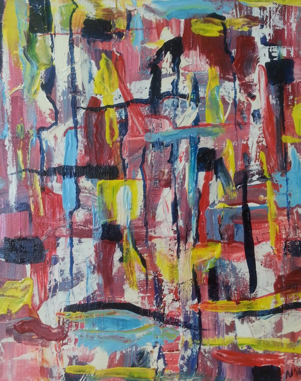 Een globale impressie van het schilderij "Bogota (Dancing around the World)" 40x50cm.