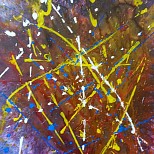 Een globale impressie van het schilderij "Praia (Dancing around the World)" 80x120cm.
