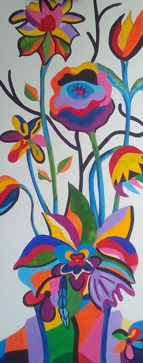 Een globale impressie van het schilderij "De zomer voorbij" 40x100cm.