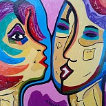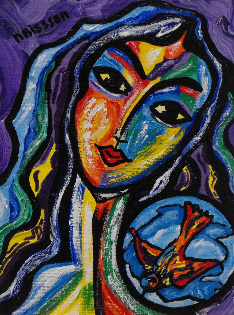 Een globale impressie van het schilderij "Beschouwend meisje" 26x32cm.