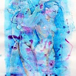 Een globale impressie van het schilderij "Kus" 20x20cm.