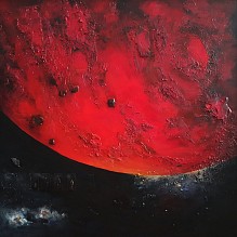 In vervolg op Apocalyps1 een vergelijkbaar werk. Bowie (Blackster), A Space Odyssey (Kubrick), Yout Want it Darker (Cohen): de beelden buitelen over elkaar heen. In Apocalyps 2 komt er een bijna angstaanjagende rode planeet op de kijker af. Ik heb getracht de dreiging vsueel door de kleur rood (vuur, vernietiging, passie) tot uitdrukking te laten komen.