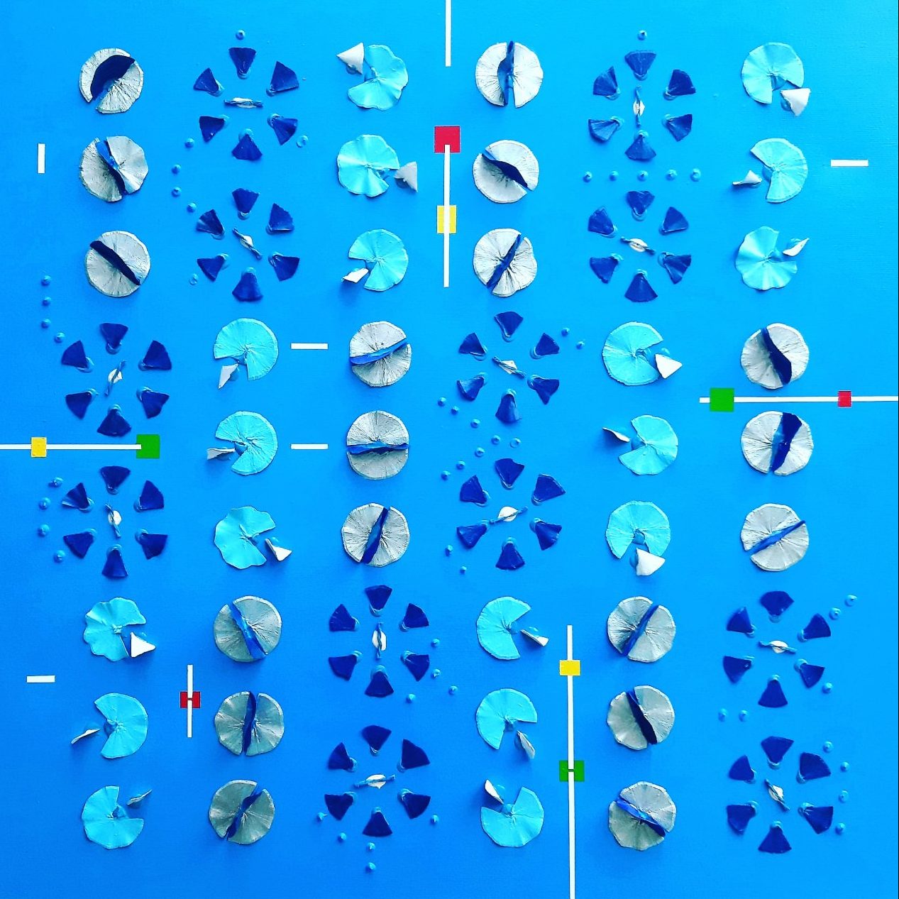 Abstract, geometric, constructivism, art, painting. Mixed media. Wood flakes, hemp rope, acryl and varnish. 70x70x8cm.