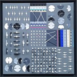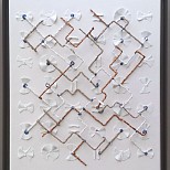 Abstract geometric constructivism. Speelse assemblage met wood flakes, rope, acryl en vernis. 3D en mixed media art. Zonder lijst op formaat 100x30x8cm