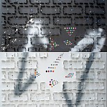 Nr 5 in een serie heldere landscape werken, met grafitti accenten. 3D. Hemp rope, acryl, wood flakes and varnish. Geometric, abstract, art, constructivism. 120x30x8cm. Voor meerdere werken uit deze serie, zie mijn website www.pleu.nl