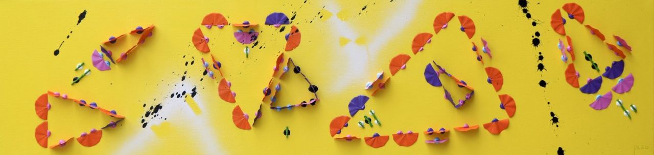 Nr 7 in een serie heldere, frisse landscape werken met grafitti accenten. 3D. Hemp rope, acryl, wood flakes and varnish. Geometric, abstract, art, constructivism. 120x30x8cm. Voor meerdere werken uit deze serie, zie mijn website www.pleu.nl