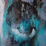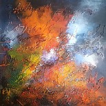 Een globale impressie van het schilderij "Abstract" 100x100cm.