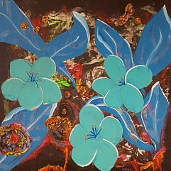 Een globale impressie van het schilderij "Uit de diepte" 110x110cm.