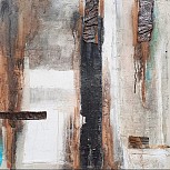 Dit werk is opgebouwd met verschillende materialen en structuren. Al met al een heel mooi doek wat past in ieder interieur