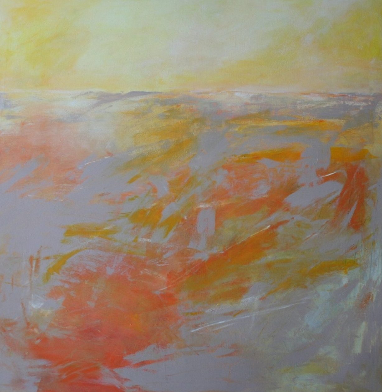 Een globale impressie van het schilderij "Zomer in corona" 80x80cm.