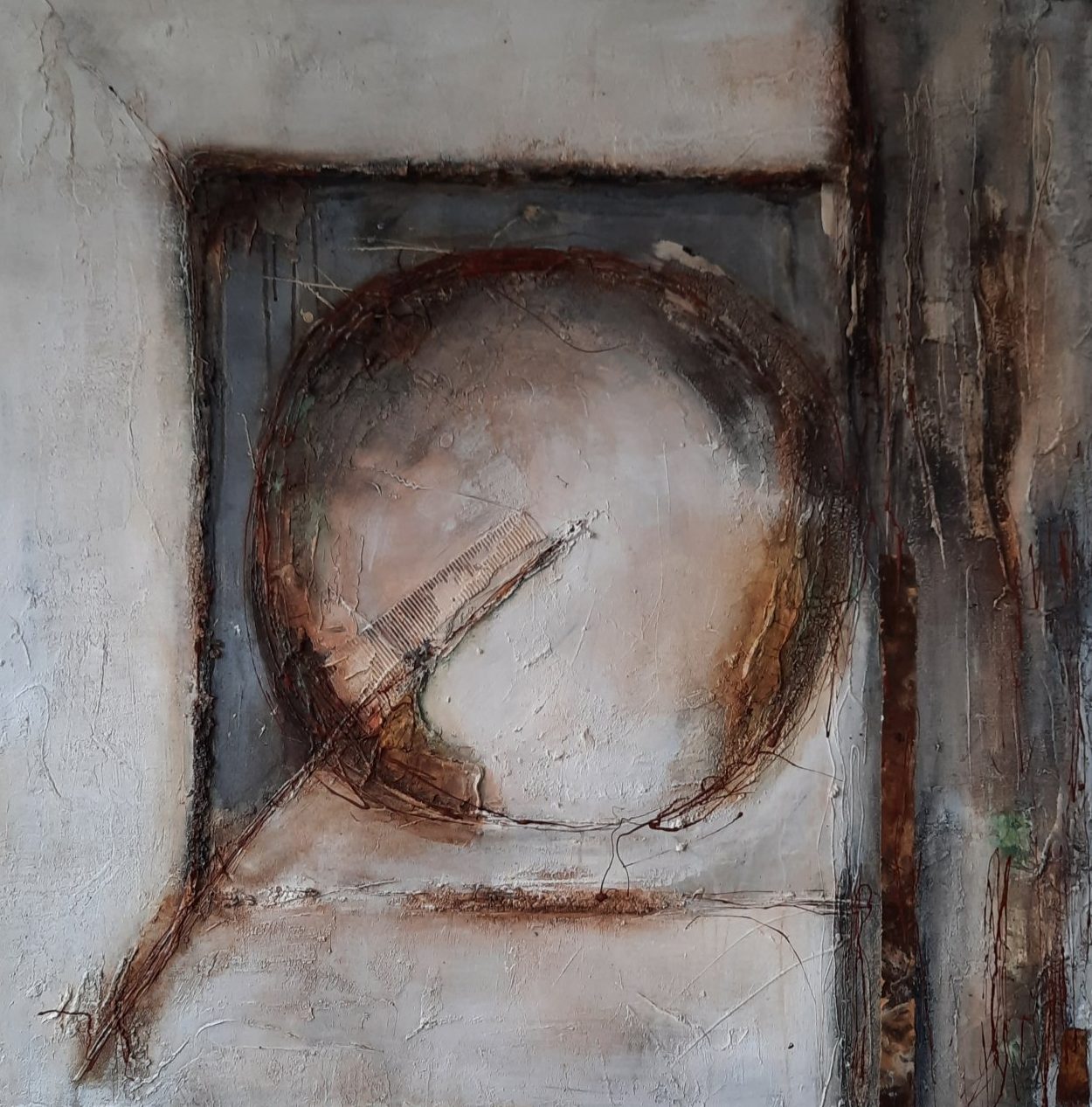 Een globale impressie van het schilderij "Lines" 100x100cm.