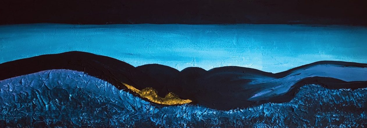 Een globale impressie van het schilderij "Zeezicht" 50x150cm.