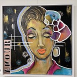 Mixed media schilderij op canvas 3 D doek. Zijkant zwart afgewerkt. Afwerking mat vernis laag.+ ophangsysteem.