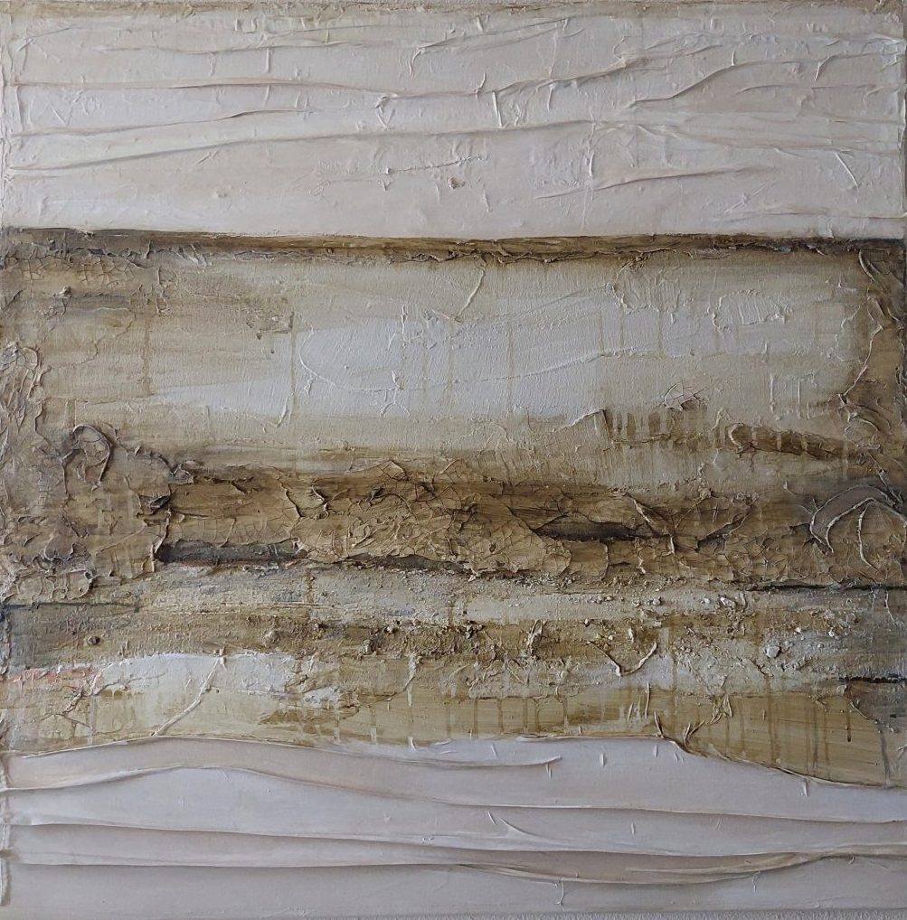 Mixedmedia schilderij.Met veel verschillende materialen heb ik dit schilderij gemaakt.