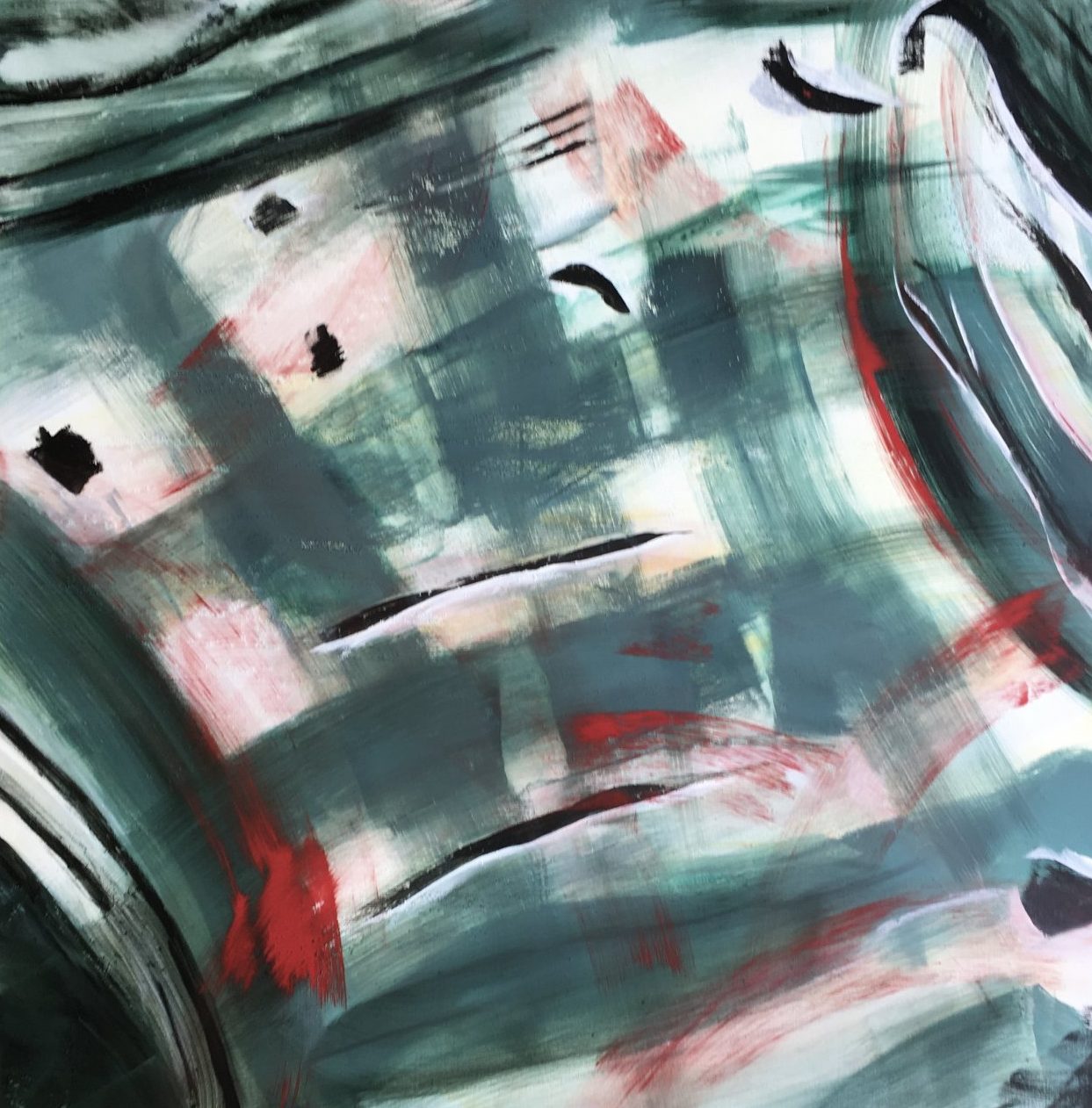Een globale impressie van het schilderij "Amor fati" 150x150cm.