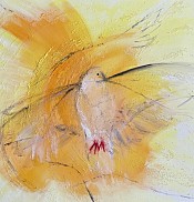 Een globale impressie van het schilderij "Diversity dove" 80x80cm.