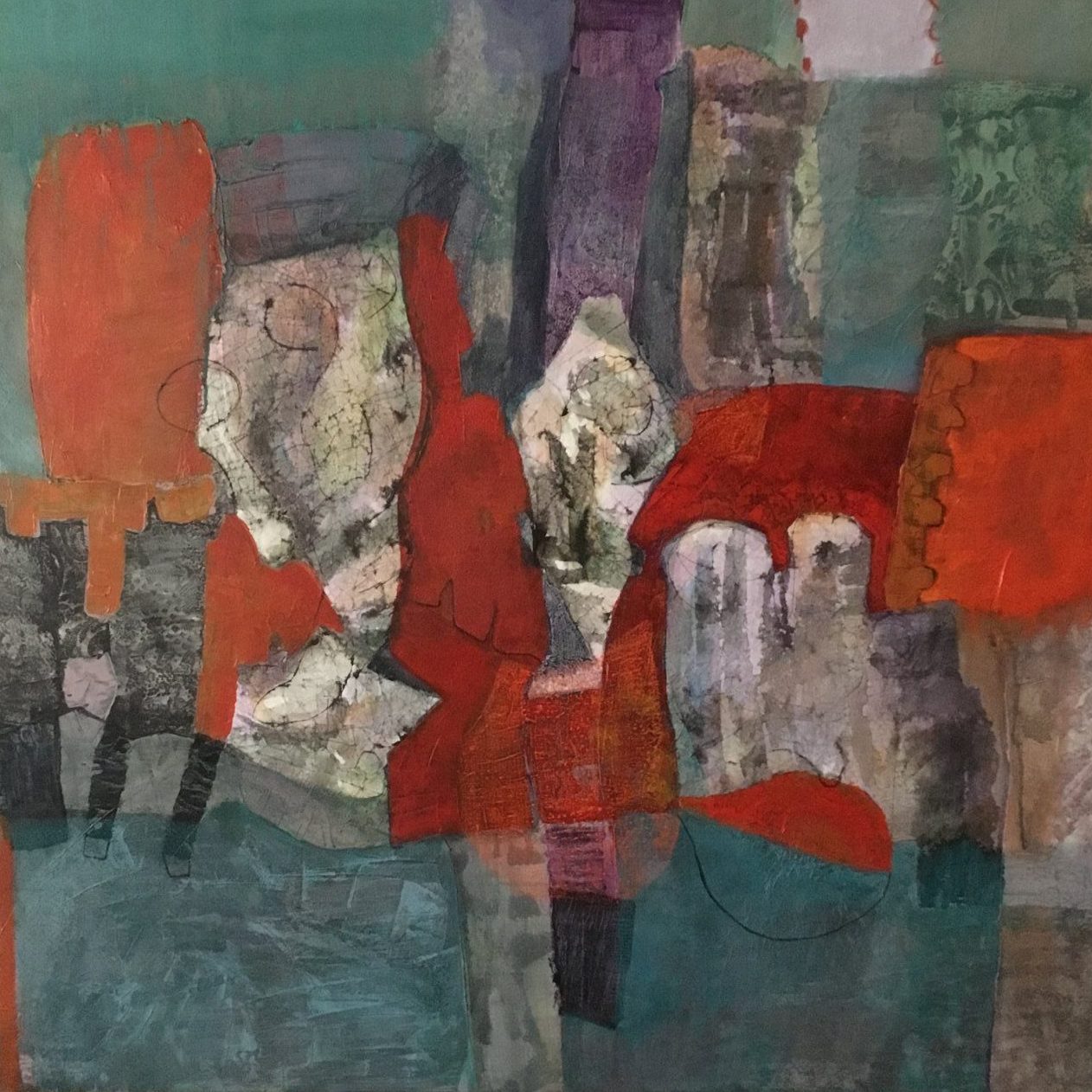 Een globale impressie van het schilderij "Memories" 100x100cm.