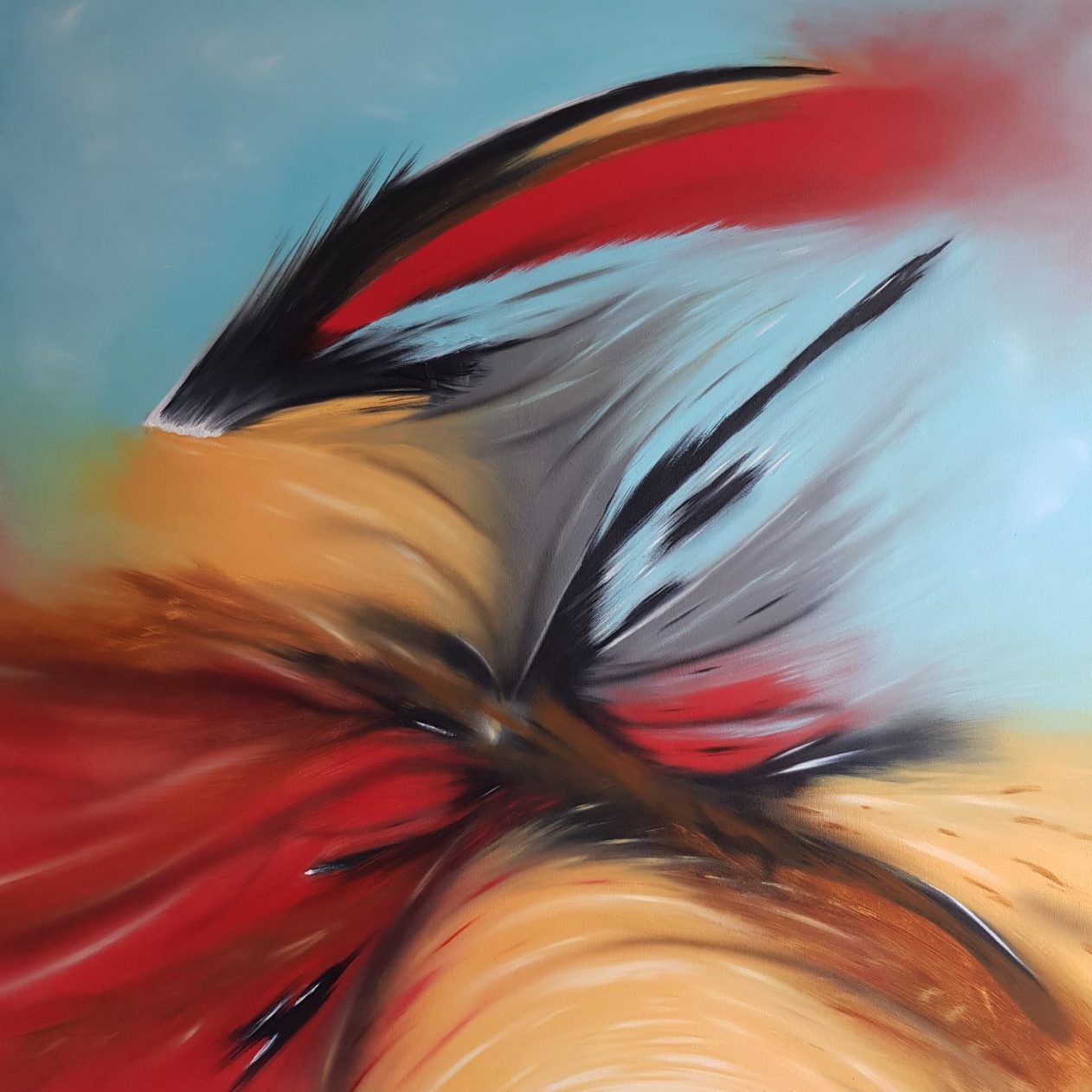 Een globale impressie van het schilderij "Dauntless Spirit" 100x100cm.