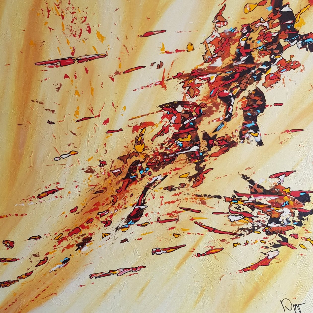 Een globale impressie van het schilderij "Aztec Fire" 70x70cm.