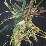 Een globale impressie van het schilderij "Razzmatazz" 80x80cm.