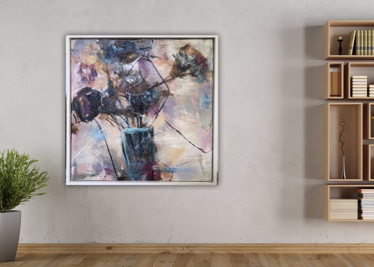 Flower Arte. Mixed media. Met structuurpasta met baklijst en ophang systeem. Dit schilderij kun je bekijken of kopen in de showroom van Totalhome in Lelystad!
